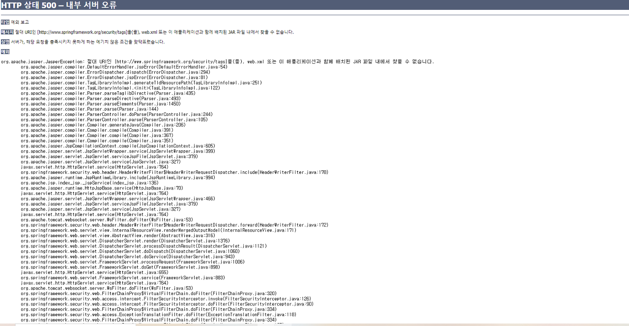 간혹 security의 jstl jar파일을 찾을 수 없다는 에러가 발생하는데 이는, lib에 직접 링크해주면 해결됩니다.