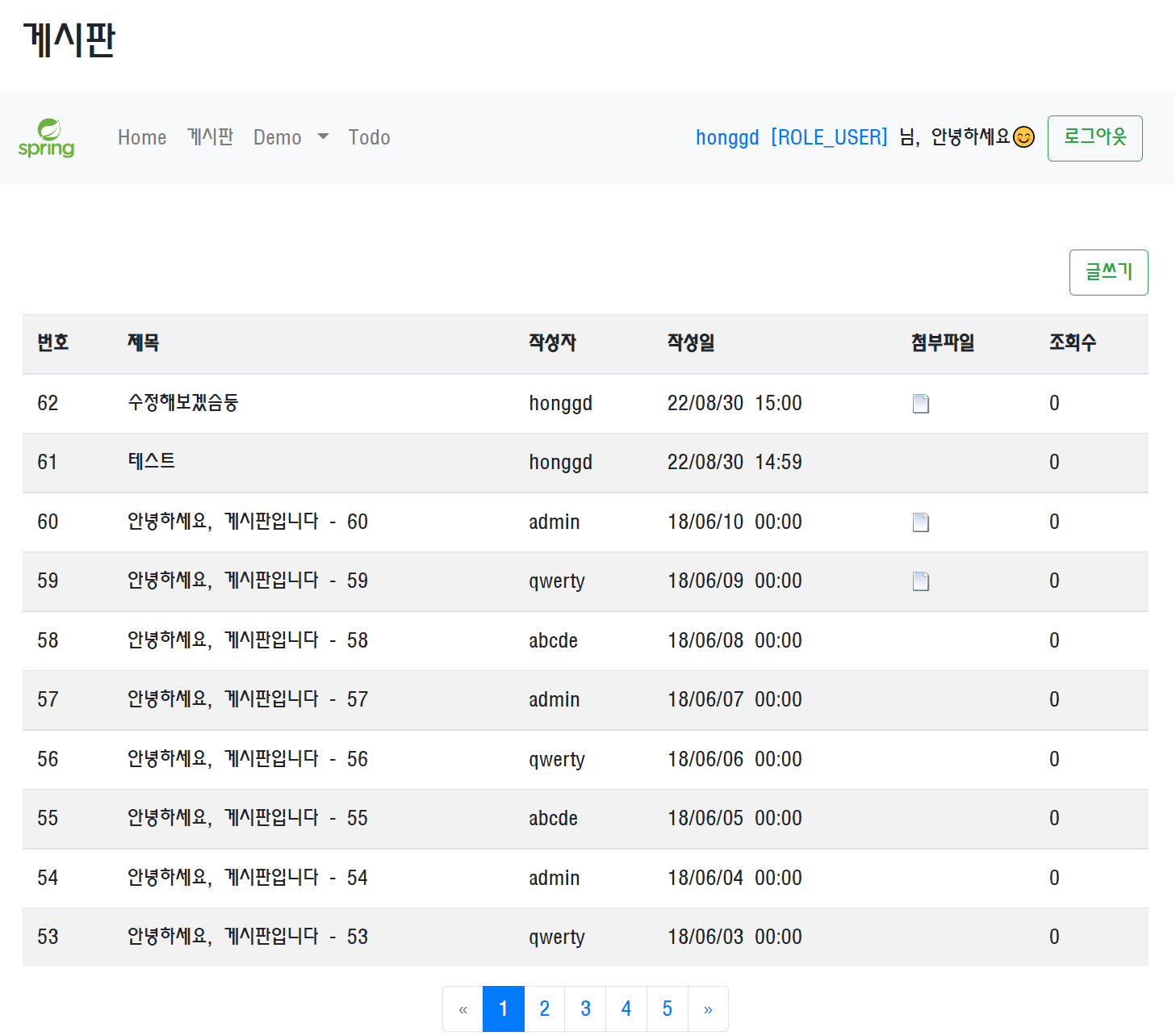 게시판 페이지 접속 - 로그인 처리 후 콘솔출력값