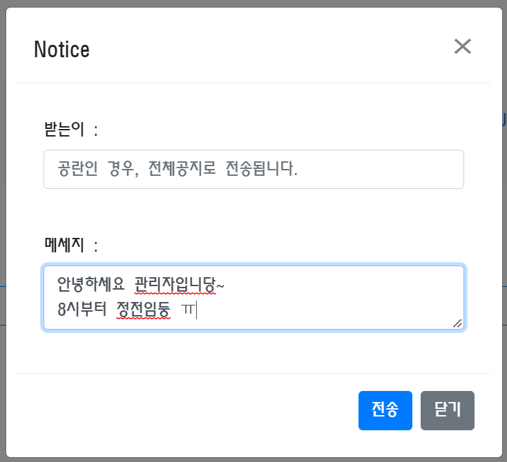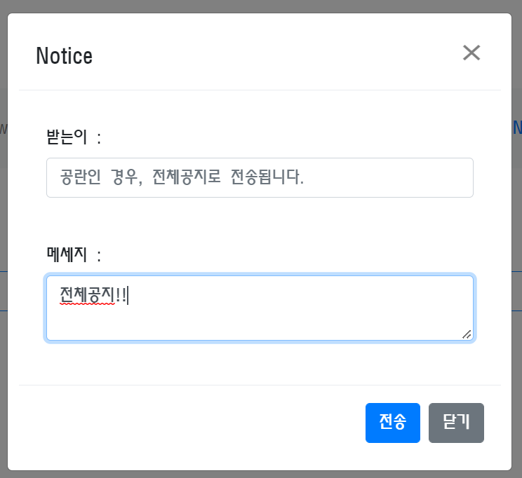 <button type="button" class="btn btn-primary" id="adminNoticeSendBtn">전송</button>