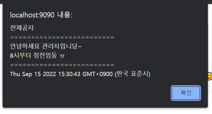 웹 소켓 이용하여 공지 전송하기