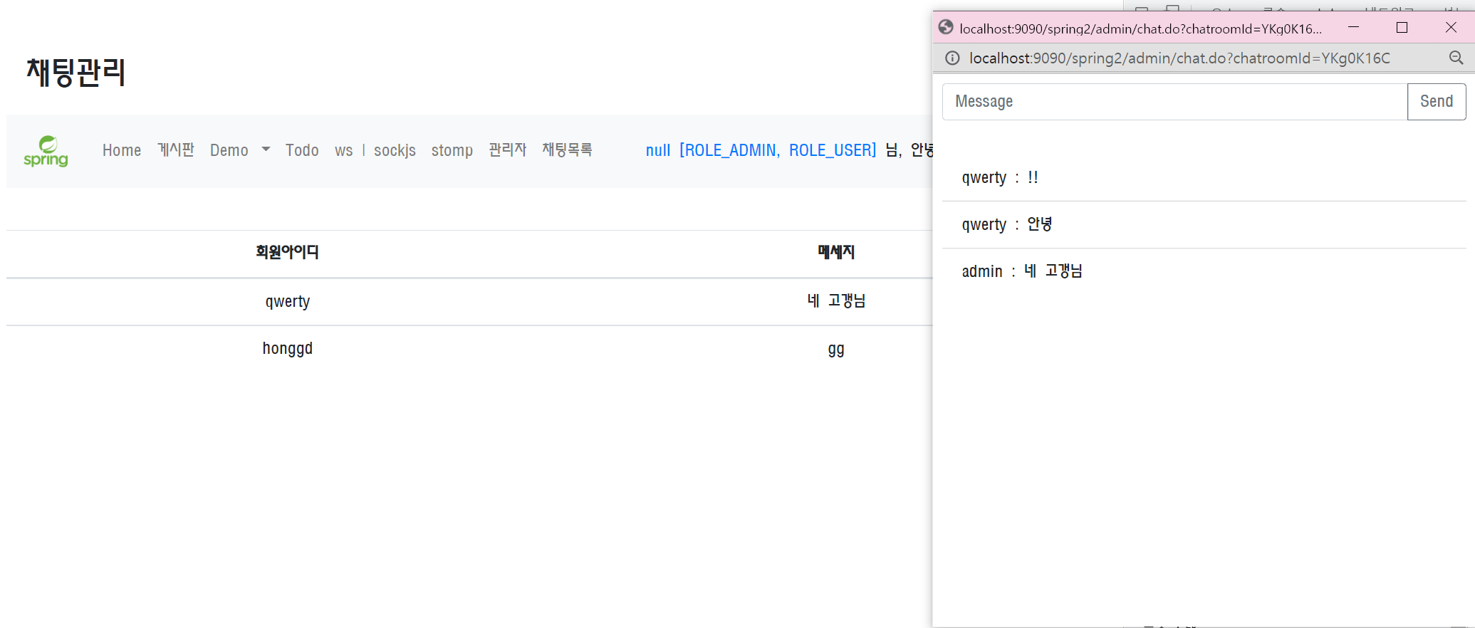 관리자 - 회원 별 채팅창 띄우기