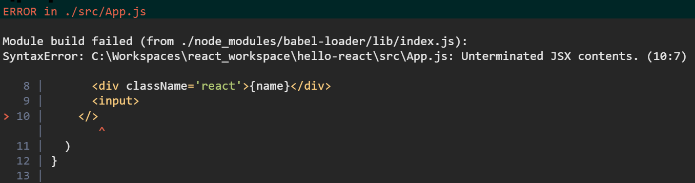 JSX에서는 오류가 발생합니다.