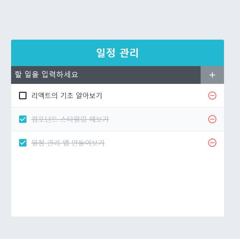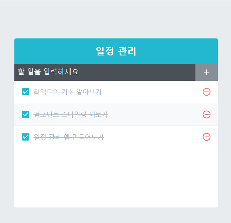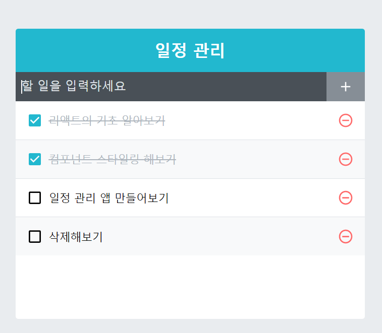 | React) 일정 관리 웹 애플리케이션 만들기 - 1 (프로젝트 준비 및 UI 구성) (0) | 2022.11.19 |
