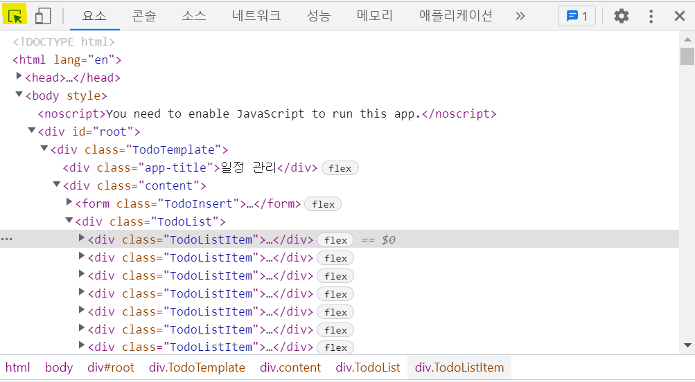 TodoListItem-virtualized 클래스 값을 가진 <div> 태그를 생성하고 props로 받은 style을 적용시켜주었습니다.