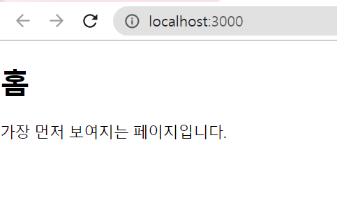 Home 컴포넌트의 내용이 렌더링되는 것을 확인할 수 있습니다.