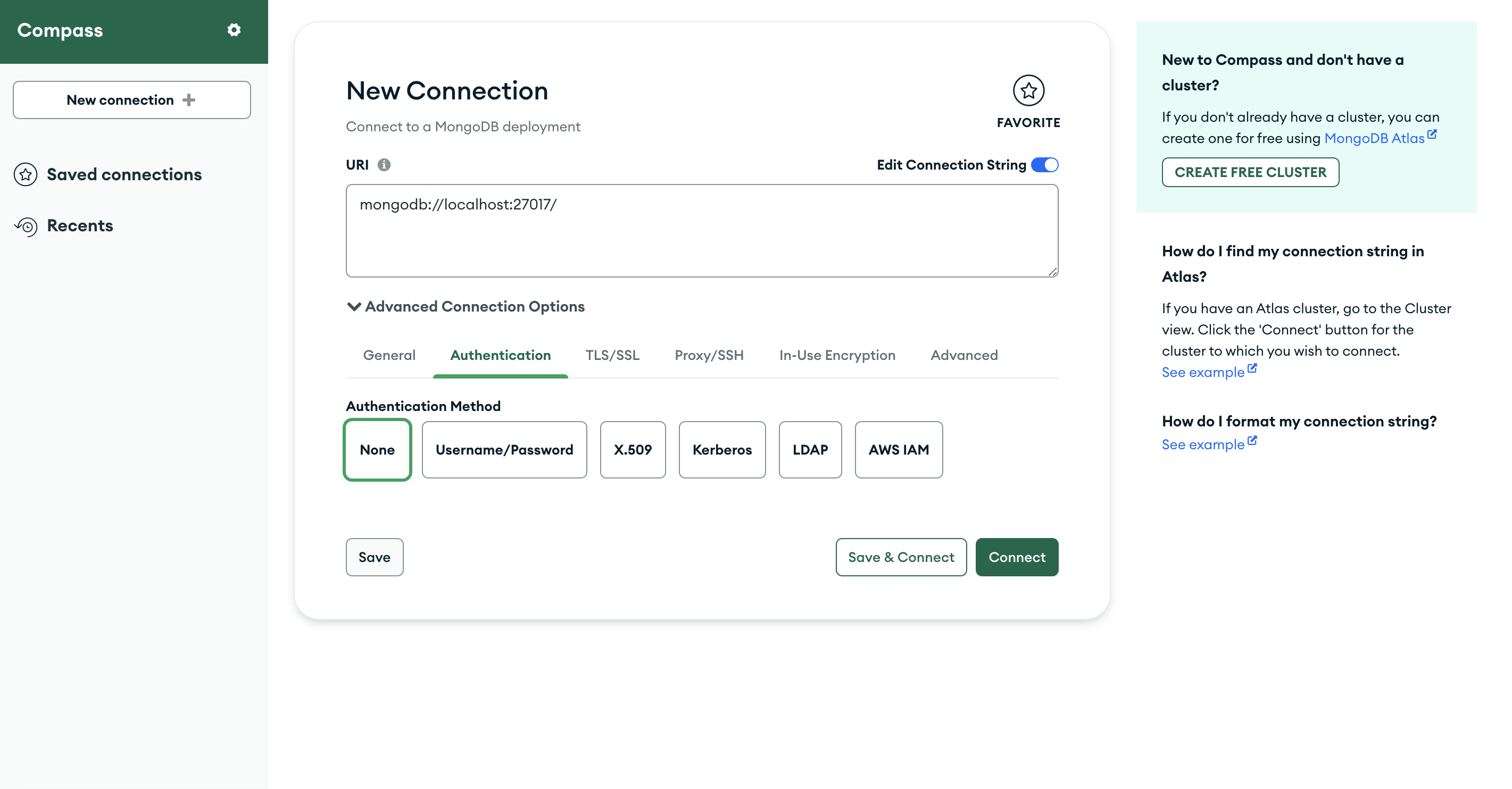 mongoDB Compass로 Connection 생성하기