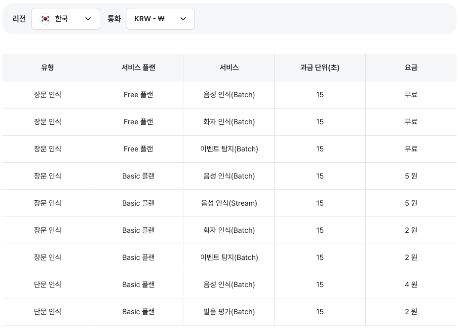 - 장문 인식: 최대 2시간 (sync), 최대 6시간 (Batch, async)