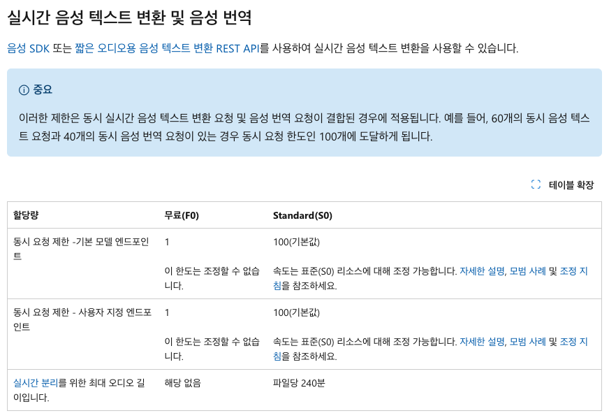 azure에서도 음성 인식에 대한 설정을 먼저 해주는 것을 확인할 수 있다.