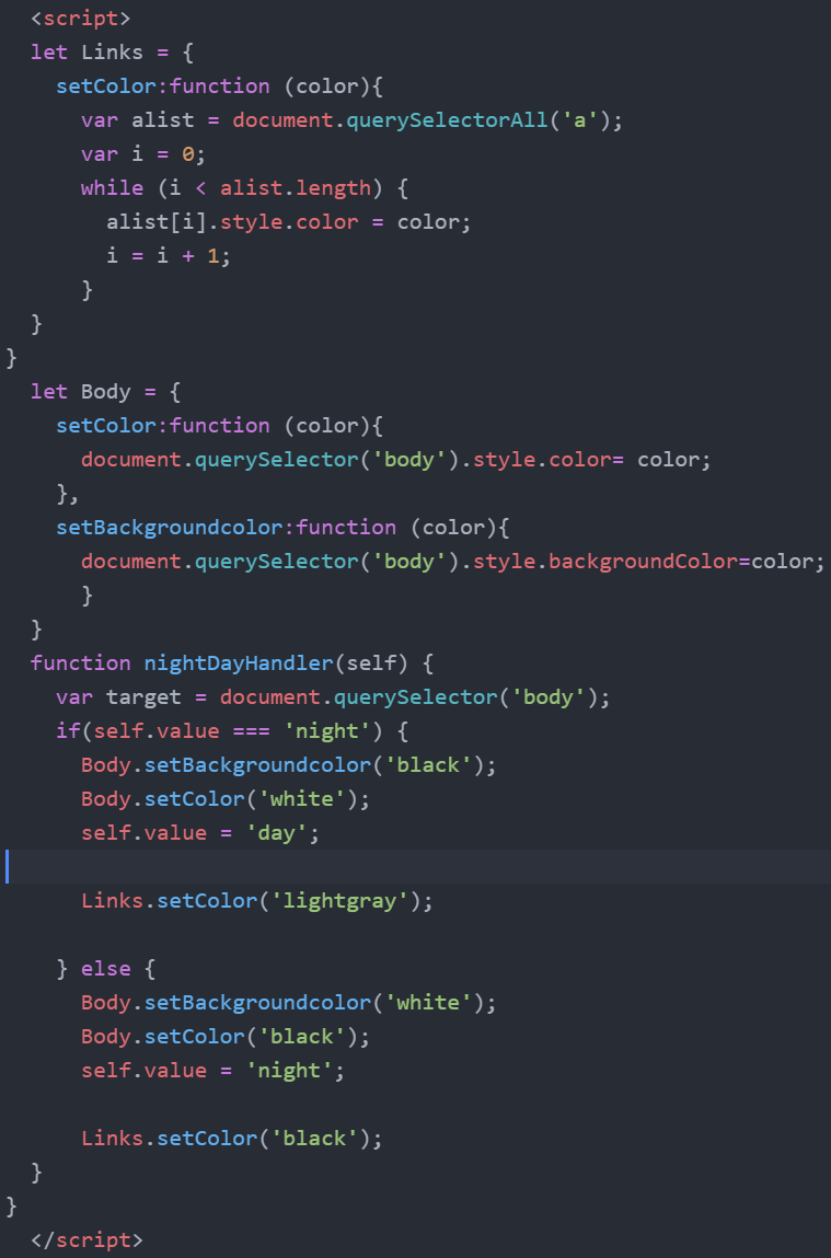 let Body = {setColor:function (color){document.querySelector('body').style.color= color;},